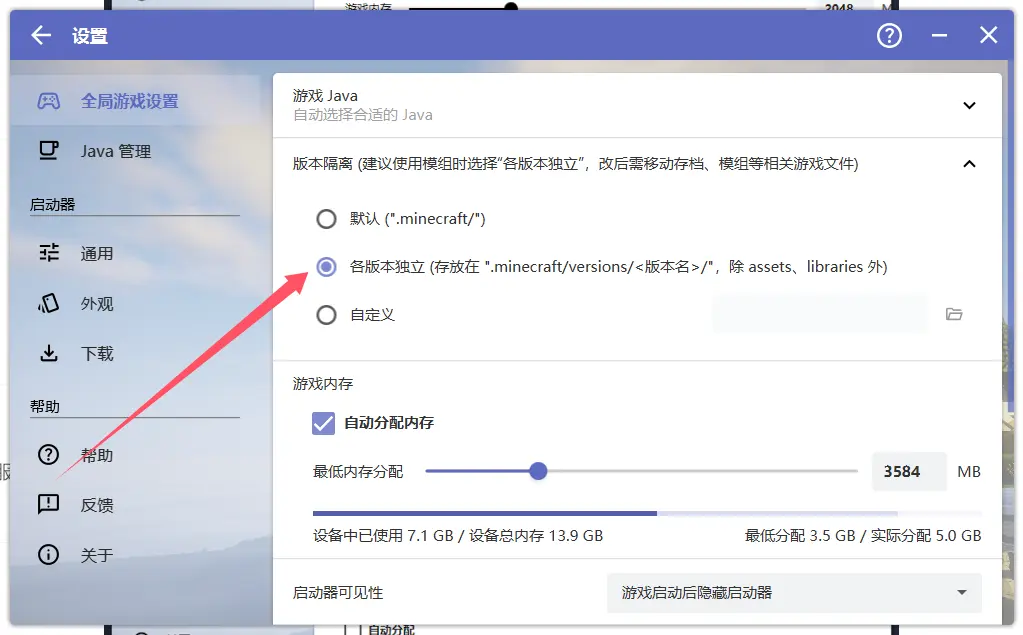 在做完版本隔离的设置后,hmcl 的快速打开各个游戏文件夹的功能就会显得十分好用。