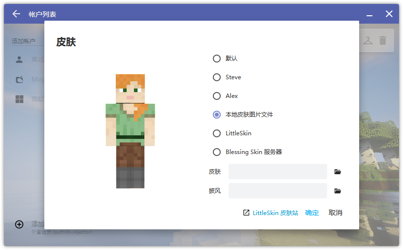 本地皮肤图片文件、LittleSkin、Blessing Skin 服务器: 请见下文↓